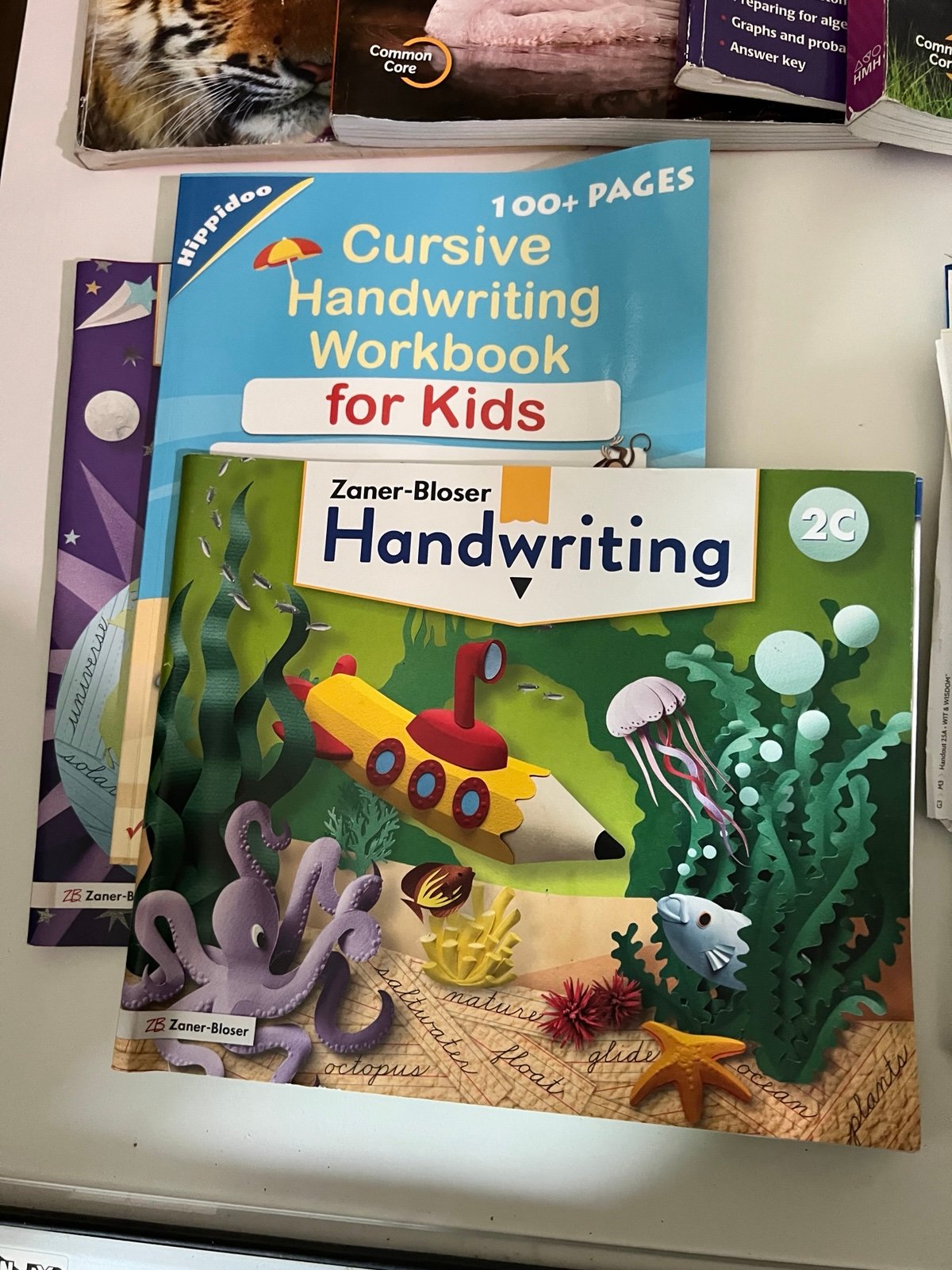 - Cursive Handwriting Workbook - couple pages missing. Rest is in tact