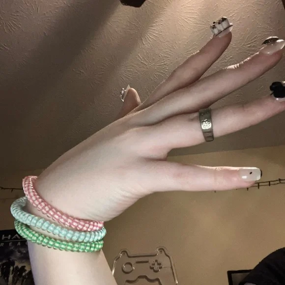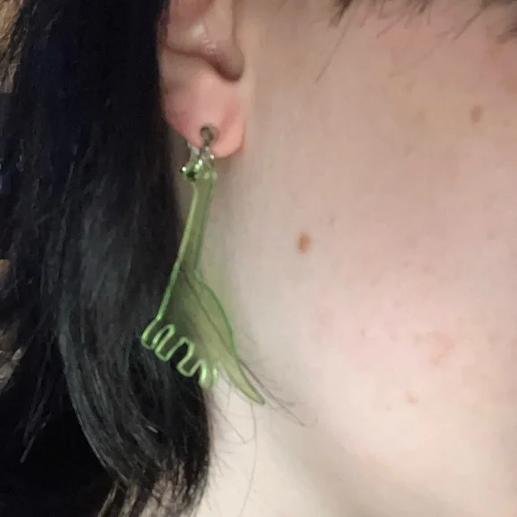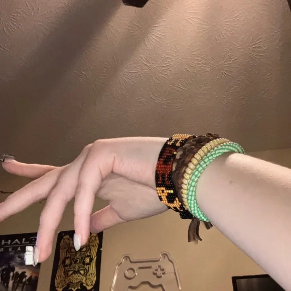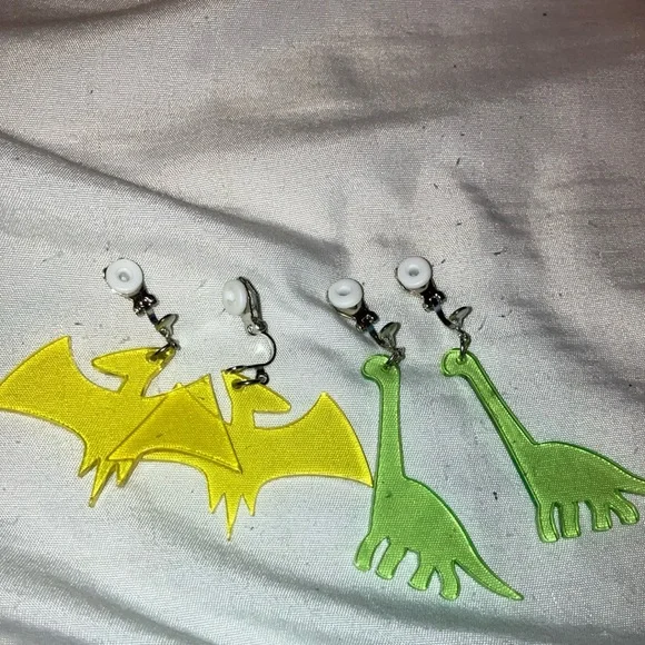 Brighten up your child's accessory collection with this colorful jewelry set. Featuring vibrant green, pink, yellow, and brown tones, these pieces are perfect for adding a playful touch to any outfit.Collection includes:•Non piercing neon dino earrings•Stretchy candy striped bracelets in blue, pink, green and yellow •Adjustable metal butterfly ring•Light blue stretchy choker •Native American handmade bracelets in woven leather and beaded LUCKY DUCK designs •Harry Potter Hogwarts crest bronze pendant