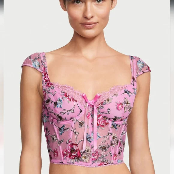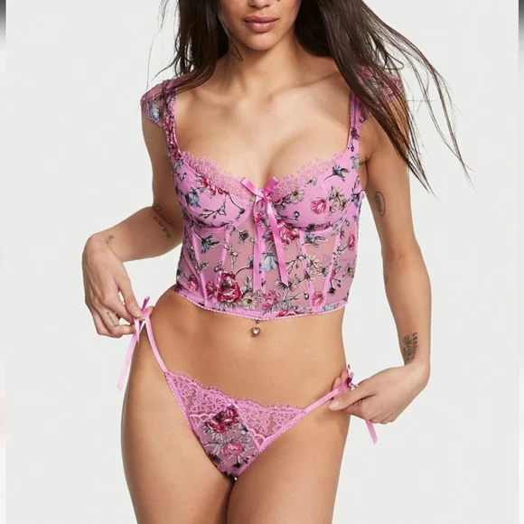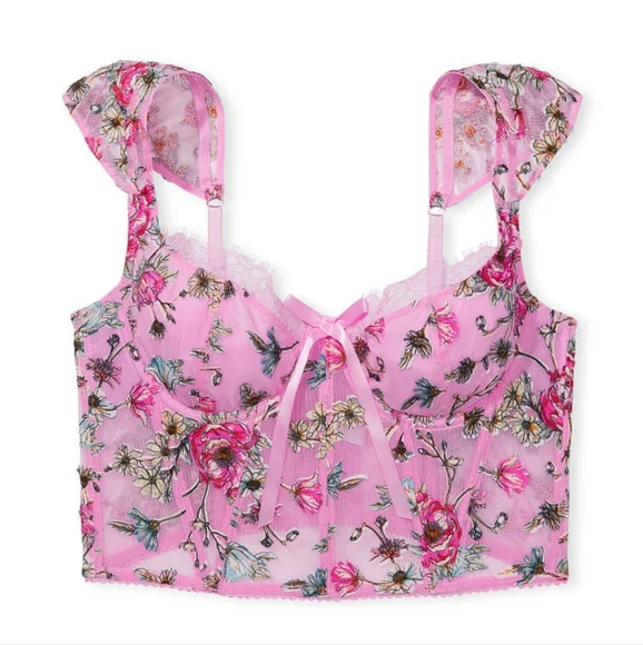 Too pretty to hide—lace-accented tulle & mesh, subtle sleeves & a decorative ribbon come together in this lingerie iteration of the prairie top. Wear it in or out. * Unlined* Underwire * Adjustable straps* Zipper at the back * Featuring mock sleeves* Decorative ribbon at front* PINK, Purple, BlueDREAM ANGELS Matching Pattern Panties Available: SIDE TIE Thong Sizes Available: S, MAn ultra-femme moment, this panty features a romantic floral motif finished with delicate lace and sexy side ties. Low rise Side ribbon ties Cotton panel gusset No back coverageFloral Embroidery CHEEKINI PANTY Medium & LargeAn ultra-femme moment, this cheeky panty features a romantic floral motif finished with delicate lace on sides and back.Low rise Center bow accent Cotton panel gusset Minimal back coverage: lots of cheek peekFloral Embroidery V-String PantySizes: XS, SFall in love with this panty, showcasing luxe lace, delicate embroidery, and a tiny satin front bow.Low rise String waist Ribbon detail at front No back coveragebride lingerie winter fall summer spring boho gypsy hippie beachy gift resort bohemian girly trendy minimalist y2k college 90s 00s 70s vintage wedding guest engagement party bachelorette vacation cruise travel western aesthetic vibe retrofloral tropical leaf