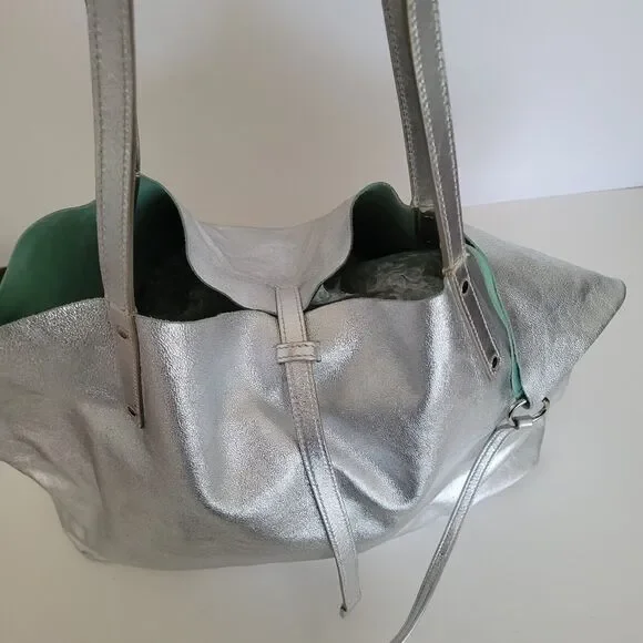 Tiffany and Co tote bag LargeAuthentic or money back guaranteeMeasures width 15-22" height 12" depth 5" strap drop 9"Condition is pre-owned,exterior moderate wear on leather heavy wearcracks on straps, interior moderate wear moderate stains,otherwise fair condition.Please check out my other listings bundle for discount. Thank you!