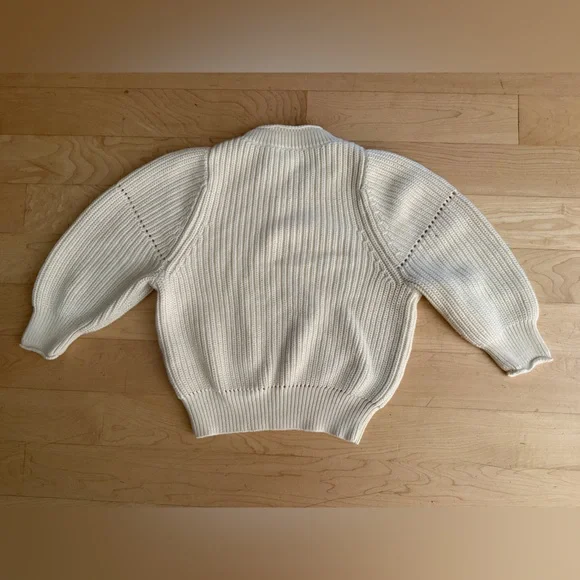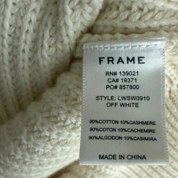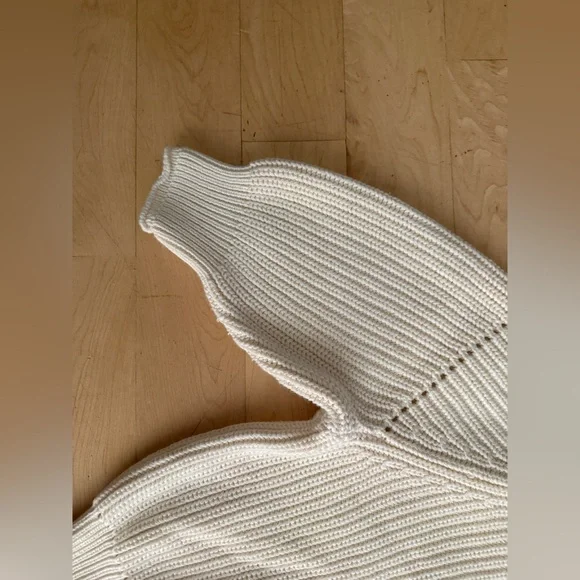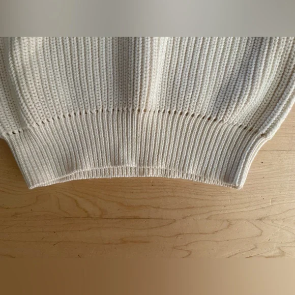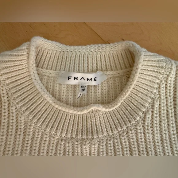 Beautiful FRAME cropped cable knit sweater in a soft cream/white shade. Size XS. Made from a luxurious cotton and cashmere blend—super soft, lightweight, and perfect for layering. Unworn and in like-new condition (no tags). Classic cable knit design with a modern cropped silhouette. No flaws. A timeless piece that works year-round for an elevated casual look.Feel free to message for more photos or measurements!