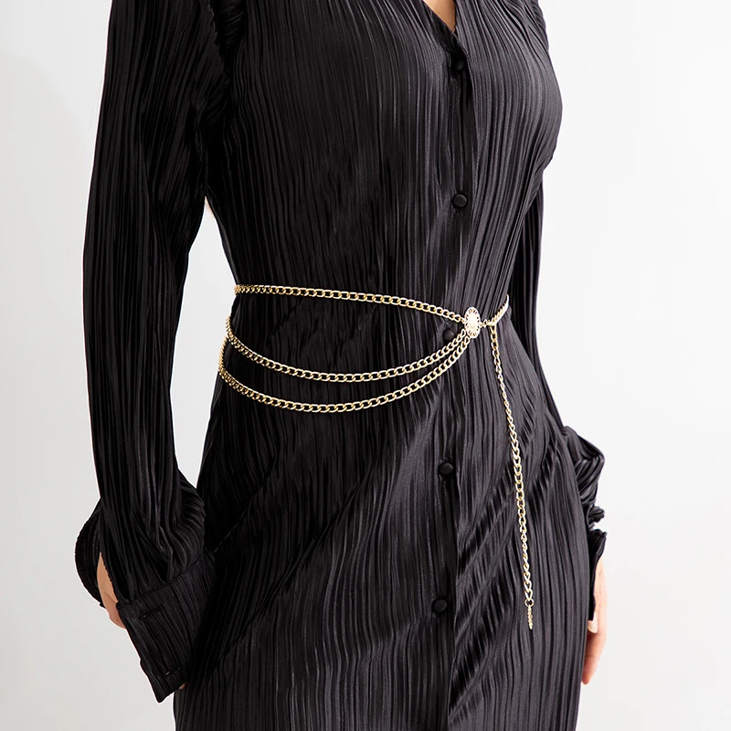 Fashion Round Brand Alloy Multi-Layer Exaggerated Body Chain 2023 New Women Queen Head Retro Street Snap Beam Party Waist Chain