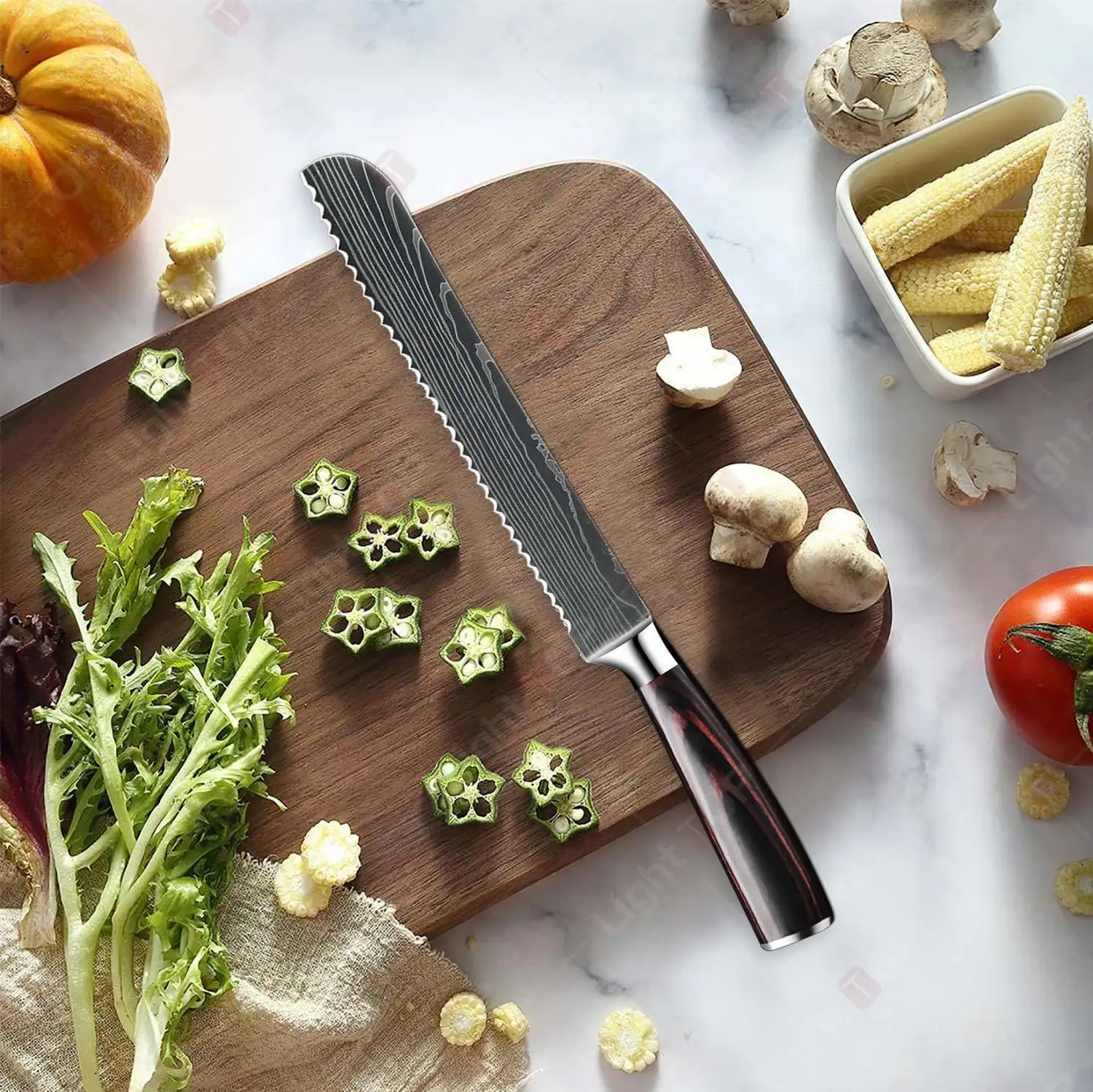 Feature: Kitchen Serrated Bread Knives,Damascus laser Pattern,For Homemade Bread,Cake Slicer Cutter,Bread Cutting Knife