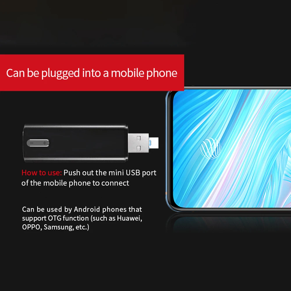 1. [Dual use USB port] Phone(TYPE-C)/computer plug and play, can be plugged into the phone, and the built-in mini USB interface is available for connection. (Only Android phones that support OTG function can use it)