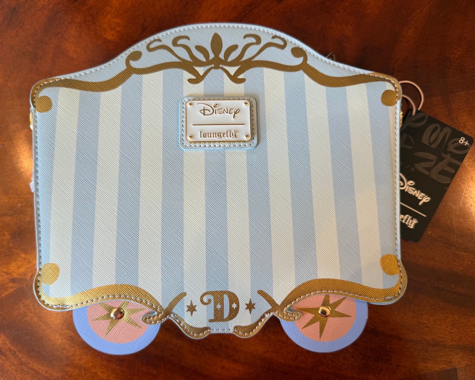 Celebrate the 80th Anniversary of Dumbo and soar with joy when you accessorize with the Loungefly Disney Dumbo 80th Anniversary Crossbody Bag. The bag shows Dumbo with Timothy Q. Mouse in a circus rain car. The wheels of the train car spin! Look no further for the main attraction for your Loungefly collection.