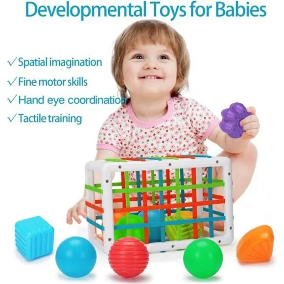 🧿Rainbow Cube Set: A rainbow sensory bin has 6 colorful sensory balls and 6 plastic stacking blocks . These sensory toys comes with different shapes which is different textures. Very light weight and perfect for carseat and outdoor beach toys for toddlers 1-3. The tummy time toys are good which is good for tiny hands, just the right size for babies to grapple. It’s perfect fidget toys for babies 0-6 months.🧿Sensory Development Toys: Babies put different shaped sensory toys through the elastic band into the sensory bin, our sensory toys are not the same texture, the baby can have different tactile experience, with multi-dimensional senses. Besides, our shape color sorter toys come in an abundance of colors that help babies recognize colors. Babies can use these sensory toys to play many different games. It’s very nice sensory toys for autistic children.🧿Awesome Montessori Toys: The sensory bin is a wonderful discovery toy and great STEM toy for a child doing physical and occupational therapy. It is so helpful with fine motor skills and great for teaching colors, shapes, multitasking skills. It's perfect for practicing hand eye coordination and problem solving. Ideal for Montessori toys for babies 6-12 months and perfect for preschool learning activities for babies 7 8 9 10 11 months .