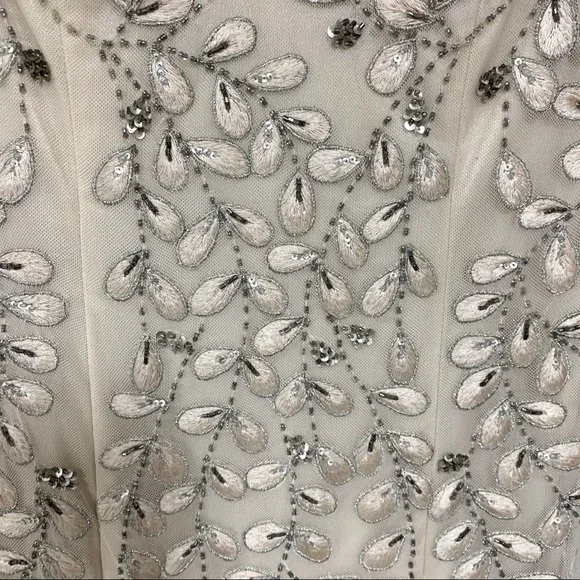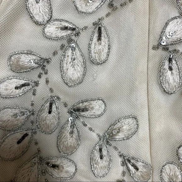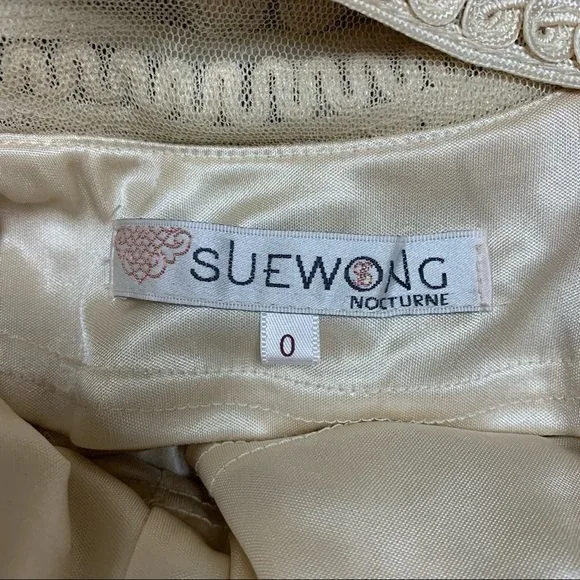 Vintage Sue Wong Nocturne Appliqué Ivory White Lace beaded Formal Wedding Party Prom DressStunning dress with incredible craftsmanship. Beautiful cream off white color is soft and feminine. Perfect for a unique vintage wedding dress Embroidered lace and beading along bodice. 3/4 sleeve. Classic cut that is timeless.A perfect dress for a formal, dance, wedding guest, homecoming, prom, party or mother of the brideAttached cups for support. Side zipper. Body of dress is lined with sleeves being sheer tulle with appliqué. Size 0 - Approximate flat measurements:Armpit to armpit: 17”Waist: 14”Shoulder to hem: 35.5”Hips: 16”EUC - tiny hole shown in last image. Hard to notice. Priced accordingly - may show signs of age as is known with vintage. Everyday, basic, classic, vtg