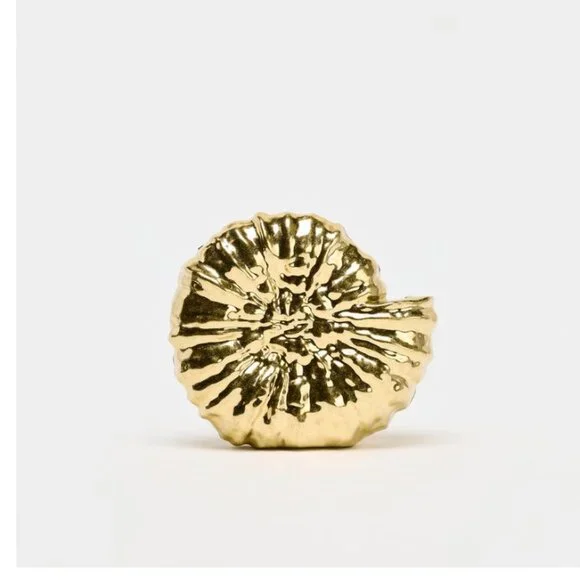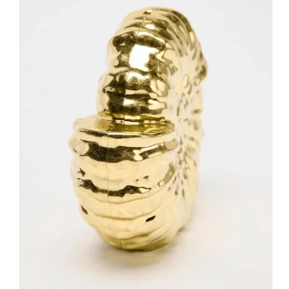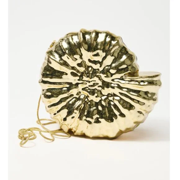 ZARA, NEW with TAGS!Inspired by treasures of the sea, this metallic gold clutch stuns with its sculptural conch silhouette and radiant finish. A statement piece with coastal glamour, it's perfect for sunset soirées, weddings, or any evening where elegance meets enchantment.Chain crossbody bag strap. Metal clasp closure.Height x Length x Width: 6.1 x 6.5 x 1.8 inches (15.5 x 16.5 x 4.5 cm).