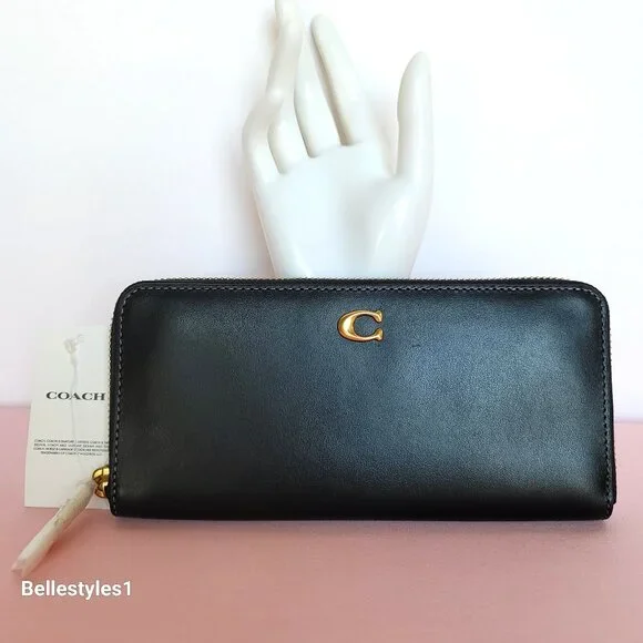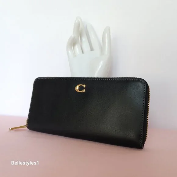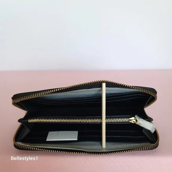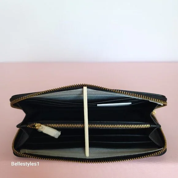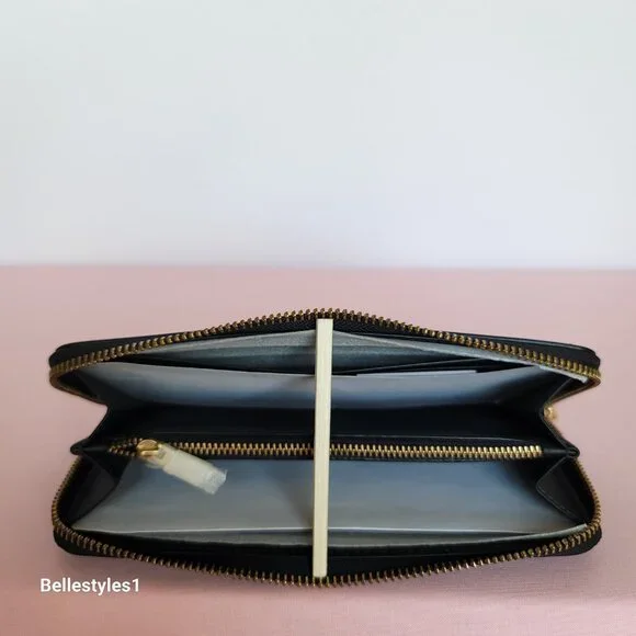 BRAND NEW WITH TAGS. Black color. A trendy slim Accordion wallet with zip-around closure is perfect to keep your essentials secure. Crafted of smooth calf leather with C logo at front. Features:•Smooth calf leather •Brass/Gold-tone hardware•Zip-around closure wallet•C logo on front•Interior: 8 credit cards slots, 1 zip-coin pocket,•2 full-length bill compartments•Wallet size Approx.: 7.75” W x 3.6” H x 0.75” D•Care card included.•Style CH822