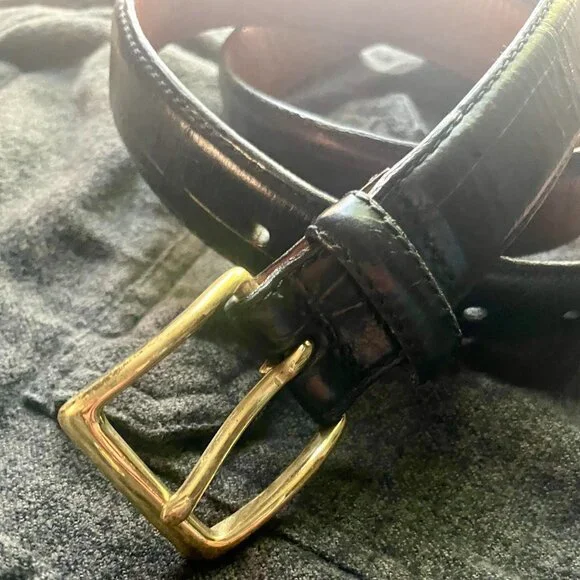 Vintage Genuine Italian Calf Leather Men's Black Belt with Gold Buckle -Adjustable Size, Excellent Condition.Genuine Italian calf leather – luxurious, durable, and softGold-tone buckle closure – sleek and polished finishAdjustable size – fits a range of waist sizes for a custom fitIn excellent condition, like new – no signs of wearPerfect for both casual and formal wearAdd this vintage Italian leather belt to your collection today – a timeless accessory that will elevate any look!