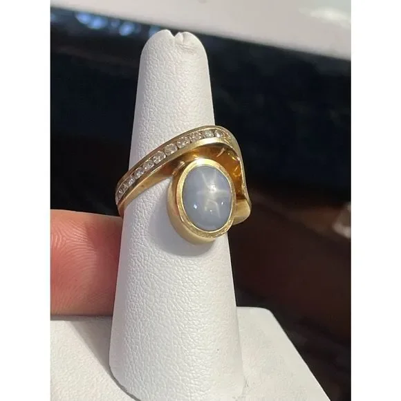 Welcome to Treasure Hoard! We guarantee all authenticity for all of our jewlery. All precious metals are scanned by an XRF Scanner to authenticate gold content. All gems are tested to make sure they are the correct stones. All diamonds are tested with a smart pro gem-eye 1 to authenticate if it’s a diamond! I guarantee we will have something you like.All jewlery comes cleaned and buffed lookingBRAND NEWAntique 14k yellow gold amethyst seed pearl ringSize approx 7Weight approx 11.65 gramsRing contains a lavender star sapphire in the center approx size 11mm oval surrounded by 13 diamonds on the side at approx 2mm each. Stamped and tested. Also attached is the xrf scan
