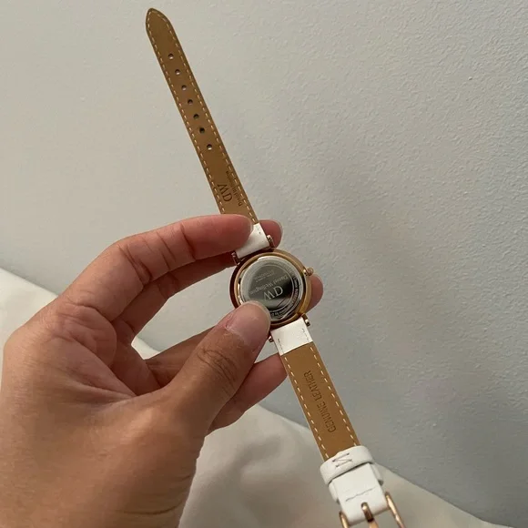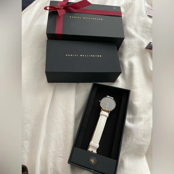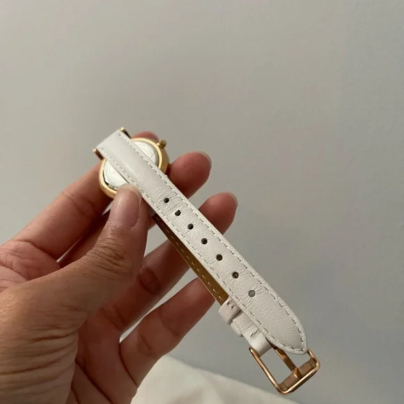 I wore this watch twice. Been sitting in a box forever, pretty much in almost excellent condition. The strap is white, so you can see one tiny dirt spot along the holes. Nothing some cleaning won’t get rid of. Just needs a battery change. Comes with the gift box and the box itself. Watch is also from the ex so only reason I’m giving it away is because I don’t want this either. Otherwise personally I’d keep. Please take off my hands ◡̈