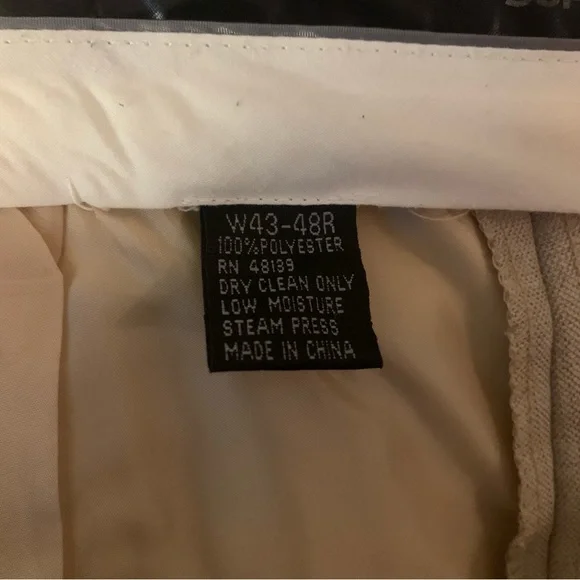 Product details Fabric type.100% PolyesterCare instructions. Dry Clean Only Origin.ImportedAbout this item Blazer and Pants Size combination: Size 48 (Jacket48/Pants W43 - Inseam 34 Cuff).Great two-piece casual dress suit for men.The price includes a suit jacket and front-pleated pants.CONTENT: The package includes a blazer with strap-back and trousersDry Clean OnlyFew stains from cleanersAbout me: I accept reasonable offers.Same or next-day shipping.New items are posted daily.I appreciate you stopping by my shop.Maximize your day.