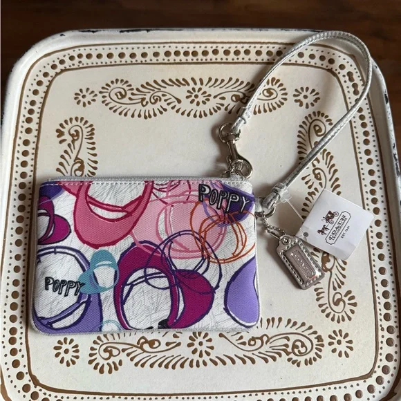 COACH POPPY Gray and Pink Graffiti Shimmer Wristlet - Rare