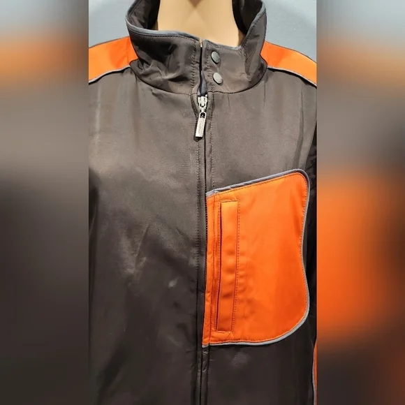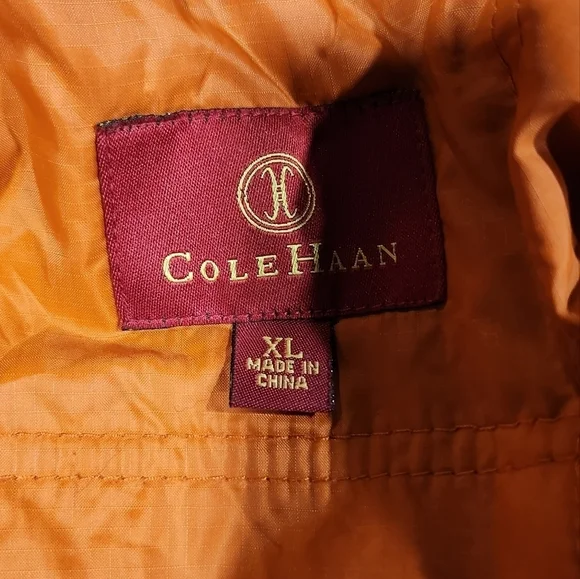 Cole haan vintage men's colorblocked full zip thermore Jacket Sz XL* item is pre-owned with no major signs of wear such as stains pilling rips etc * full zip front with a high neck* 57% nylon 43% polyester shell* dry clean* made in China tags: cozy. warm. casual. Color- blocked. winter jacket. fall weather. spring jacket