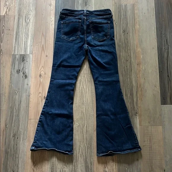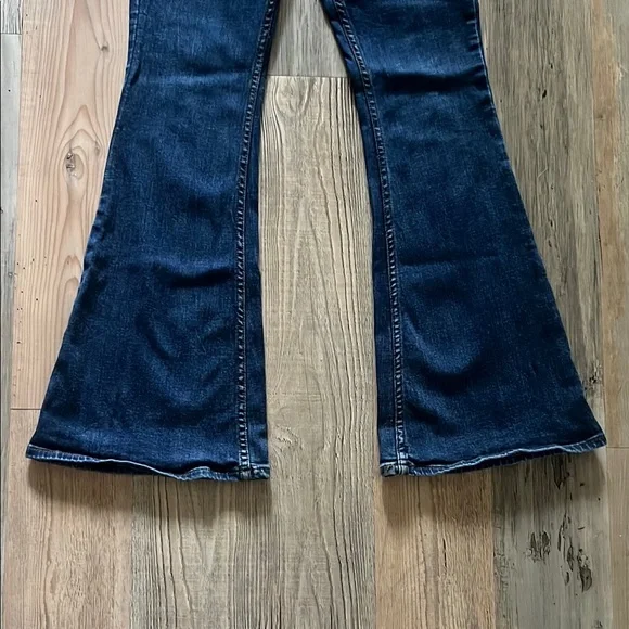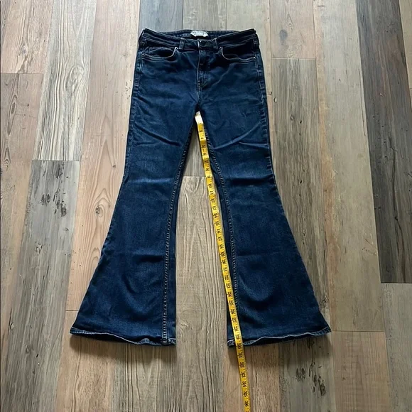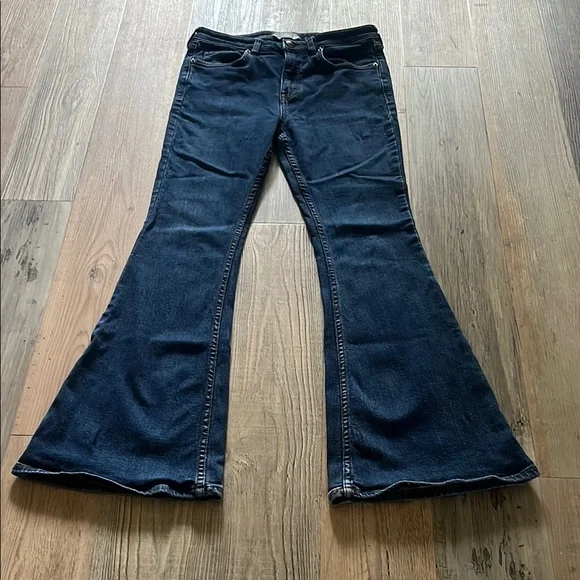 Free People Flare Leg Bell Bottom Blue Jeans Size: 28Classic Free People flare jeans featured in a clean silhouette. The deep blue denim has a vintage-inspired look with subtle color variations, perfect for a retro touch.Brand: Free People Size: 28Good Preloved Condition** Signs of Wear **** slight rippling of the jean material in one area (AS PICTURED) stretches out and not very noticeable when wearing, but worth noting** one of the back pockets has the beginnings of a small hole starting (AS PICTURED)EUCExcellent used condition** The majority of my items are not brand new. If they are then I will state so in the description. That being said items may show minor signs of wear. If there is anything that I spot as a major sign of wear or flaw I make sure to say so in the description and show photo proof of it**Measurements provided in photos!Shop with me!Questions? Ask!Make me an offer!All reasonable offers are considered!