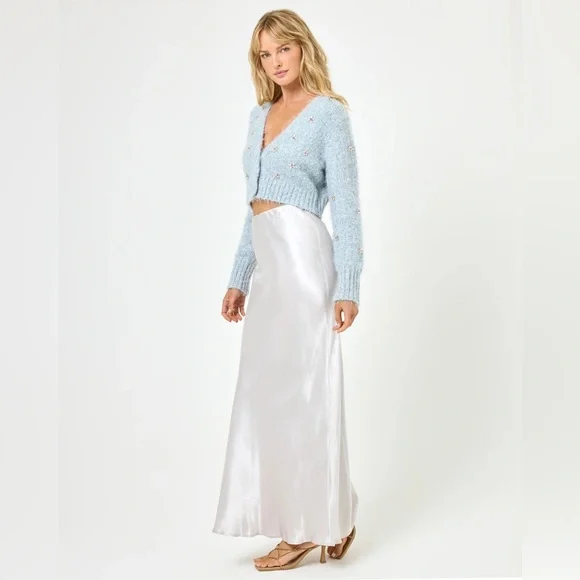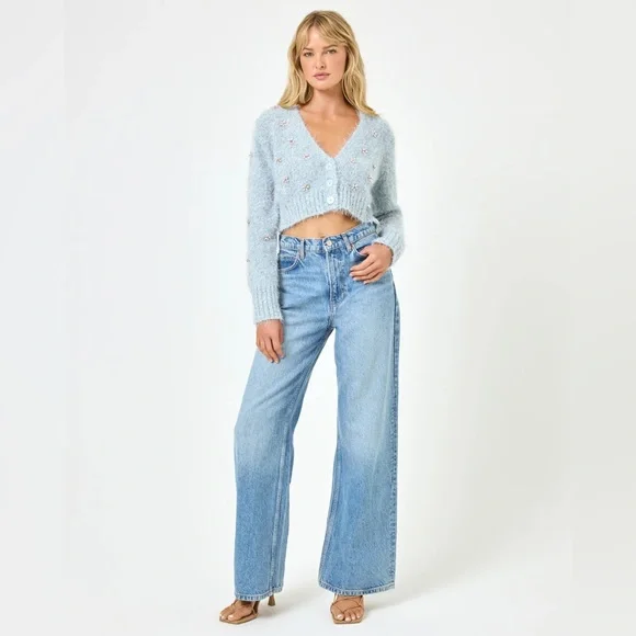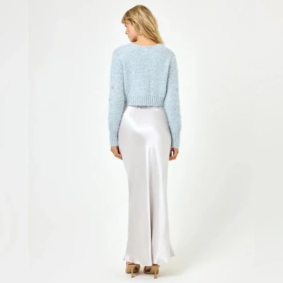 The Crystal Cardigan is a big mood. This cropped sweater is so soft and the button front combined with crystal embellishment lends a festive flair. Outfit idea: pair it with our Sweet as Honey Satin Skirt and a little kitten heel.Cropped CardiganButton FrontJewel DetailingSnowflake Sweater KnitSize XS-XL38% Polyester, 34% Nylon, 27% Acrylic, 1%SpandexStyle # CRYSW25fitFIT-Model Measurements:Lura, size S - Height 5'9, Bust 32", Waist 24", Hips 34"