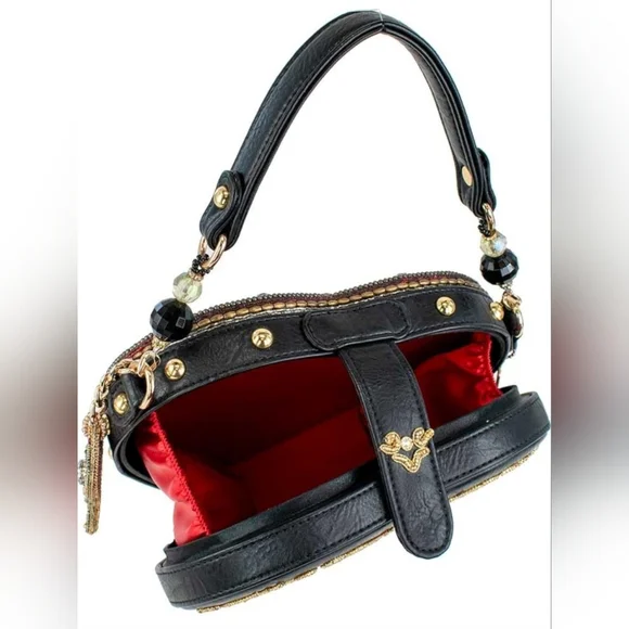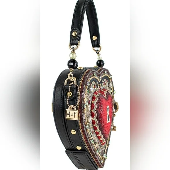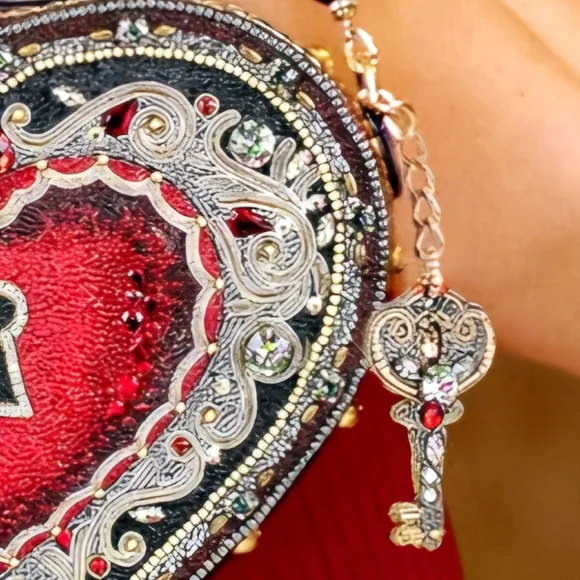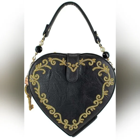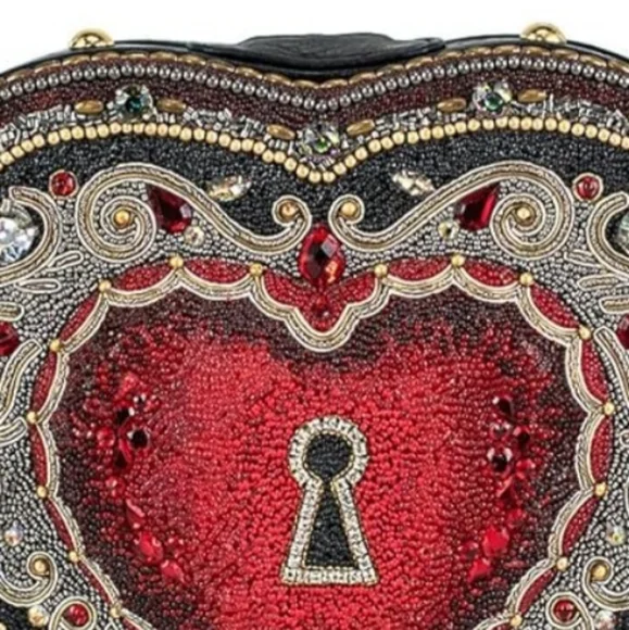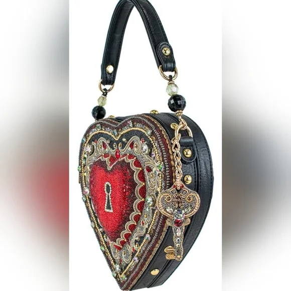 Spread love wherever you go with our heart-shaped locket handbag! Complete with a removable key charm and intricate filigree design, this top-handle bag is the perfect accessory for any occasion.Heart-Shaped Locket Design: Features a charming heart-shaped locket with an intricate filigree design, spreading love and elegance wherever you go.Removable Key Charm: Comes with a delightful removable key charm, adding a touch of whimsy and personalization to your bag.Versatile Carry Options: Includes a removable crossbody chain strap for hands-free convenience and a top handle for a chic, classic look.Secure Zipper Closure: Ensures your belongings are safely stored with a sturdy zipper closure, offering peace of mind.Functional and Stylish: Designed with a back pocket and spacious interior that fits a phone, making it both practical and fashionable for any occasion.Exquisite detail!