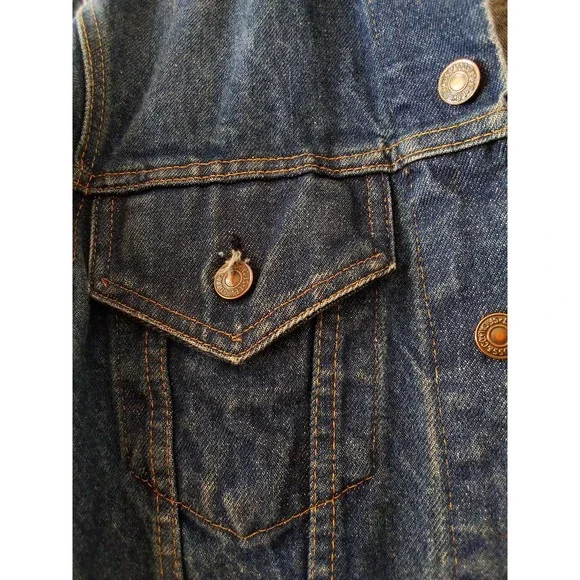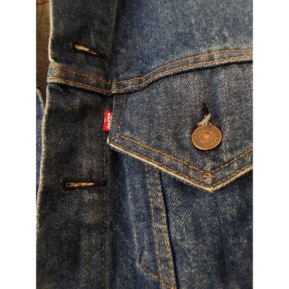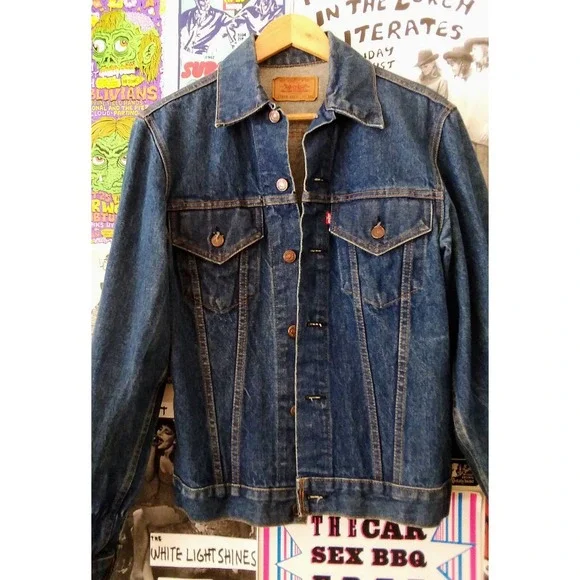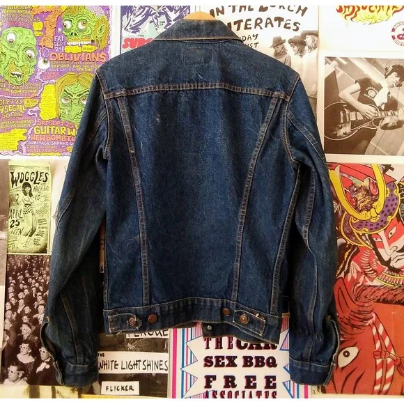 Classic 1970s Levi's trucker jacket. Type 3 denim jacket with two chest pockets (no hand warmers). Dark wash.Timeless Style number 71205 0217. Feel free to reach out for more photos or an offer. Size 36 Measures approx. 19.5" pit to pit and 25.5" long down the back. Great condition overall. Threadbare button holes and some blemishes on the left sleeve.