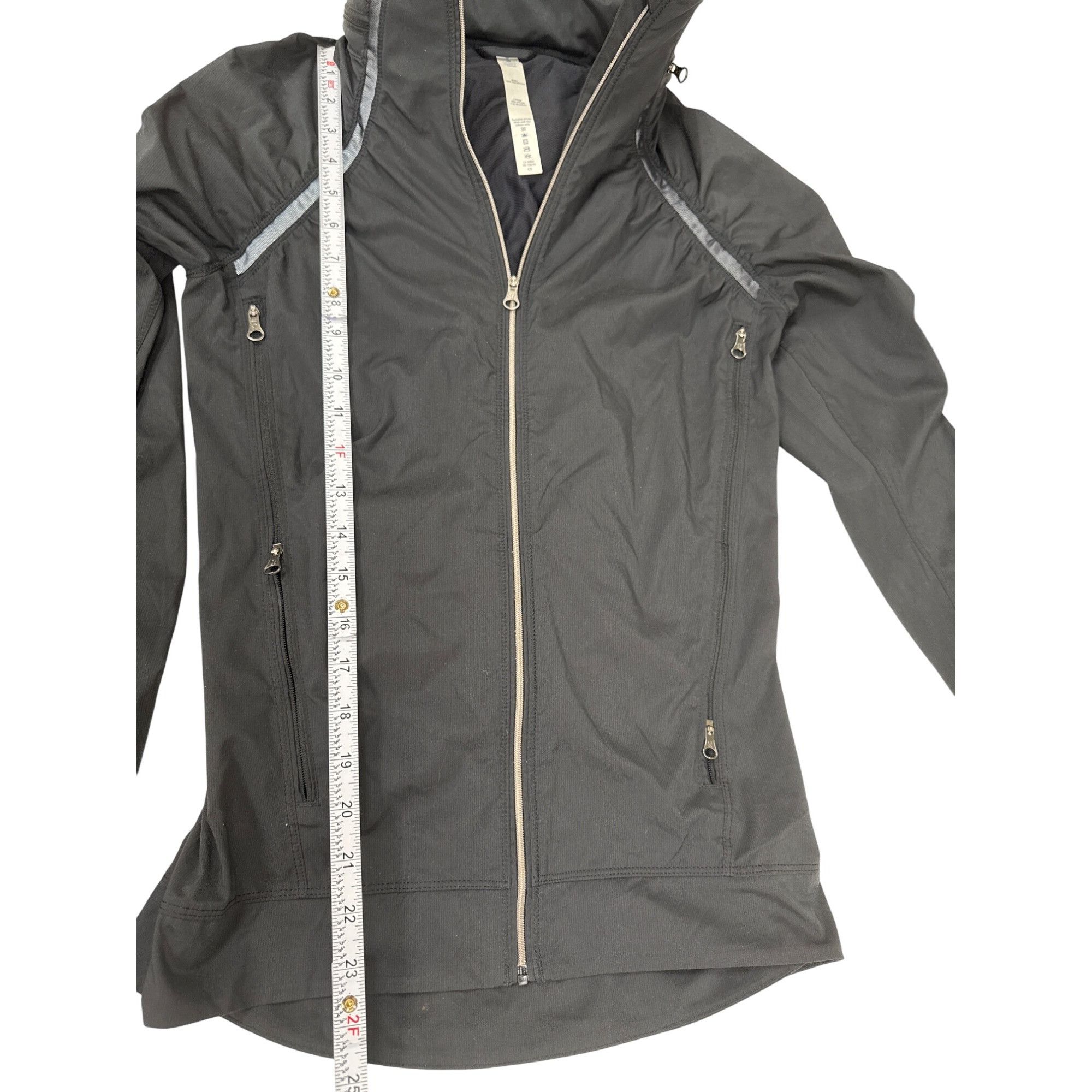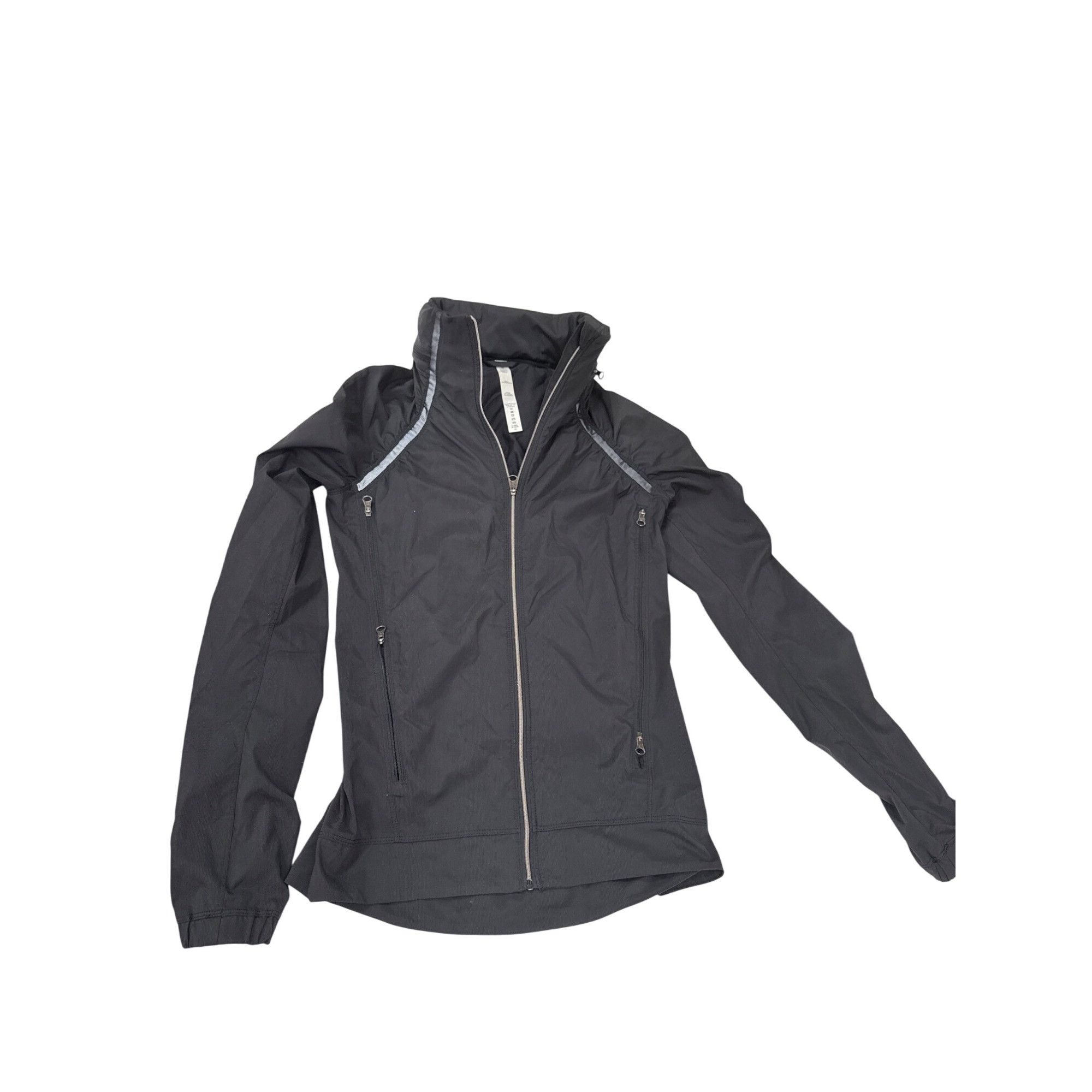 This women's Lululemon jacket size 4 from Athleta offers a sleek design with water-resistant fabric, ideal for outdoor activities. Its black color provides a versatile look suitable for various settings. This is a very nice jacket in very good condition ready to be shipped today. SKU 7232